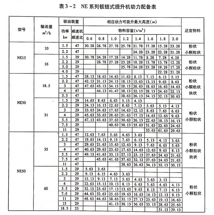 板鏈提升機常用于經過破碎后的物料或顆粒度較小的物料,比如:糧食、石灰石、熟料、碎石、水泥、煤粉、化肥等小顆粒物料,它不能用于大直徑的物料提升運輸。那么相應物料應該選擇哪種提升機,TD系列多用在糧食、化肥、煤粉等物料的運輸;TH系列在碎石、砂子、砂石粘土方面用的較多;NE提升機則在礦石、水泥、熟料方面取得了較多的應用,還有其他型號適用范圍可咨詢廠家。